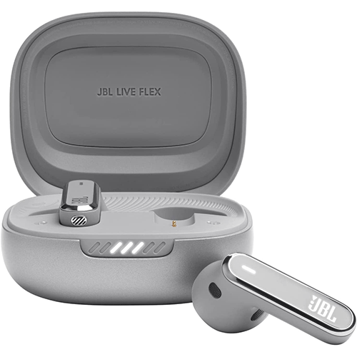 - JBL Live Flex Earphones, In Ear Bluetooth Earphones with 40 hours of Battery Life, Noise Cancelling and Water Resistant, in Silver